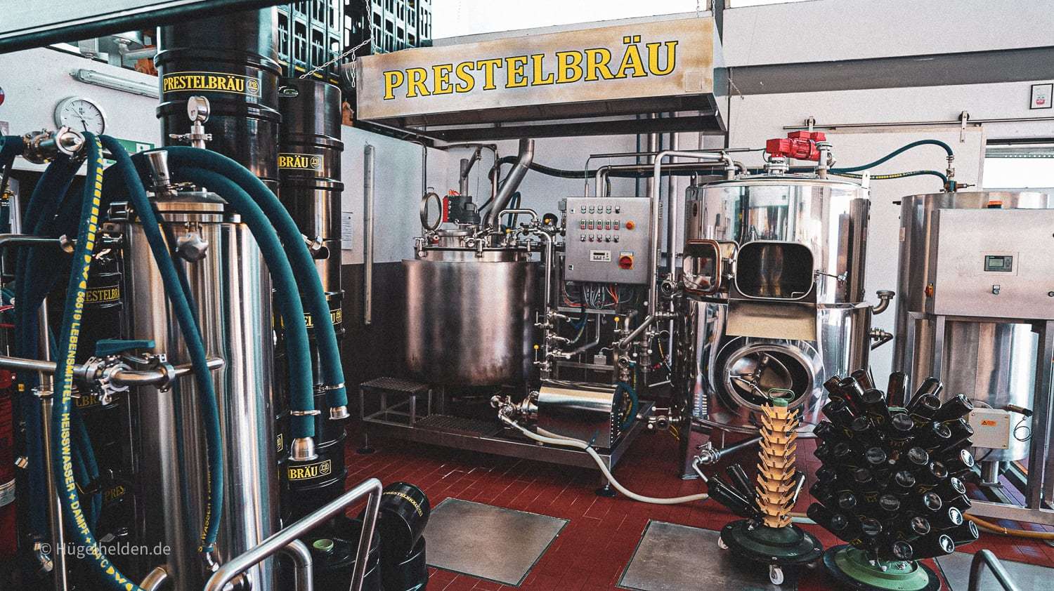 Also begann er Stück für Stück zu skalieren, okkupierte die heimische Garage und baute unter dem anfangs vielleicht noch etwas skeptischen Blick seiner Frau seine kleine Hausbrauerei weiter aus. Irgendwann war aber der Punkt erreicht, an dem zu Hause einfach Ende Gelände war. Eine eigene Heimstatt für die Brauerei musste her, also tat er sich mit seinem besten Freund seit Kindertagen, Dieter, zusammen und beschloss, die Sache jetzt auf stabile Beine zu stellen. Vor zwölf Jahren wurde also Prestelbräu geboren – ein Name nach Matthias‘ Nachnamen, der jetzt vielleicht keine Preise bei Kreativwettbewerben abräumen würde, sich aber Stück für Stück einfach ergeben hatte. Für Dieter war das fein, für Matthias auch … Presto, Prestelbräu.